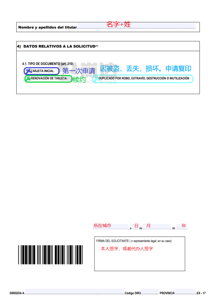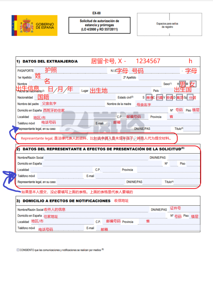 另一个关键表格是EX17,实际上也可以使用EX00代替。这个表格对于办理首次居留手续至关重要。尽管图片上写着EX00,但实际上与EX17表格是一模一样的,因此您可以按照相同逻辑填写。